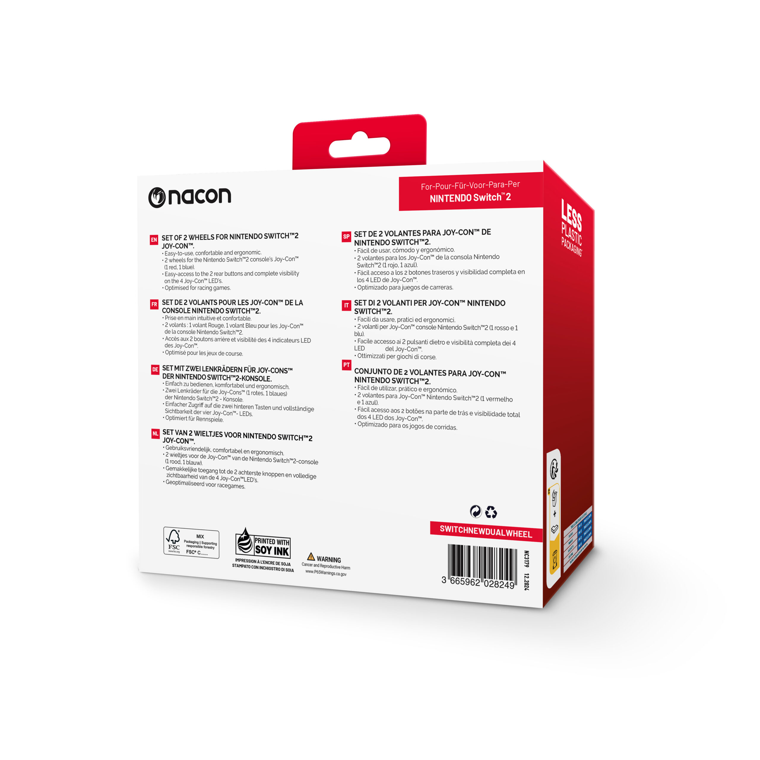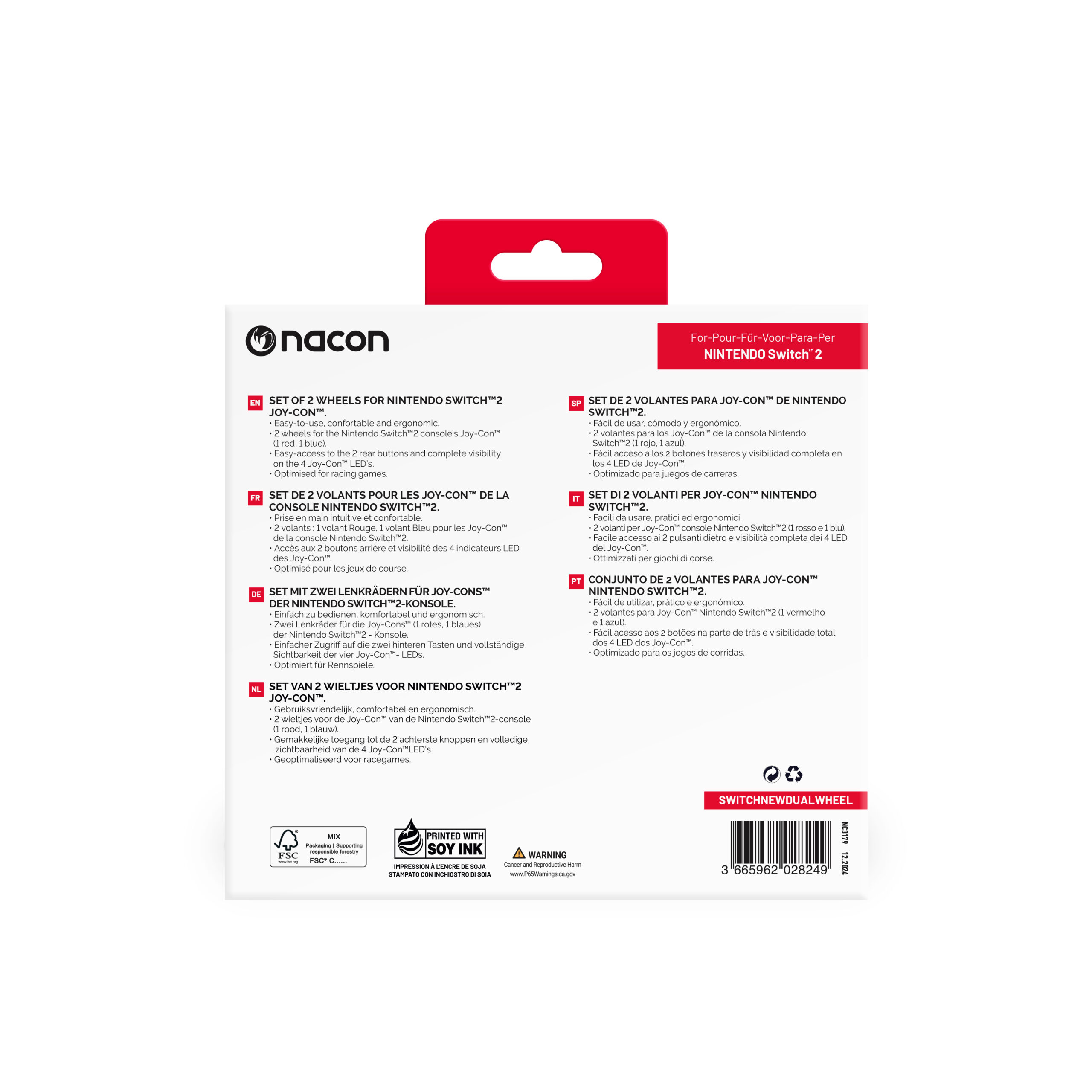 The Nacon 2 Wheels for Nintendo Switch™ 2 deliver a fun and immersive driving experience for your favorite racing games. Designed to fit Nintendo Switch™ 2 Joy-Con™ controllers perfectly, each wheel provides precise control and a natural steering feel, enhancing gameplay for all ages. Made from lightweight yet durable materials, these wheels ensure long-lasting comfort and reliability during extended sessions. The ergonomic grip and responsive design make cornering, drifting, and accelerating more intuitive, while the quick-insert mechanism allows easy Joy-Con attachment and removal without risk of damage. Ideal for multiplayer fun, the set includes two wheels, letting you and a friend race head-to-head in style.