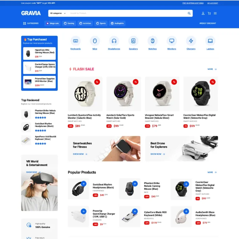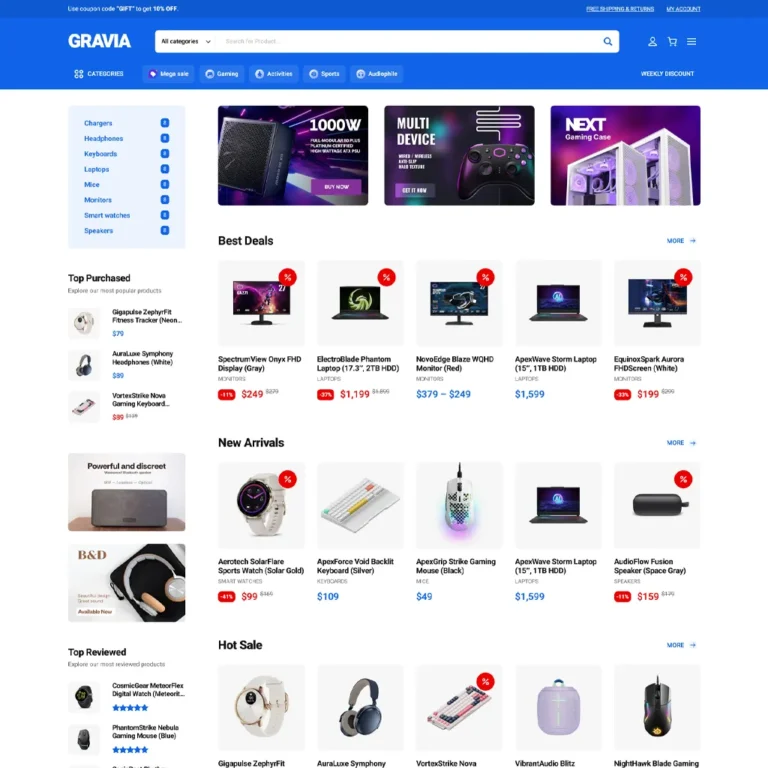 Unleash unparalleled performance on both the front-end and back-end with our lightning-fast theme. Experience low resource consumption — no bloated options included.